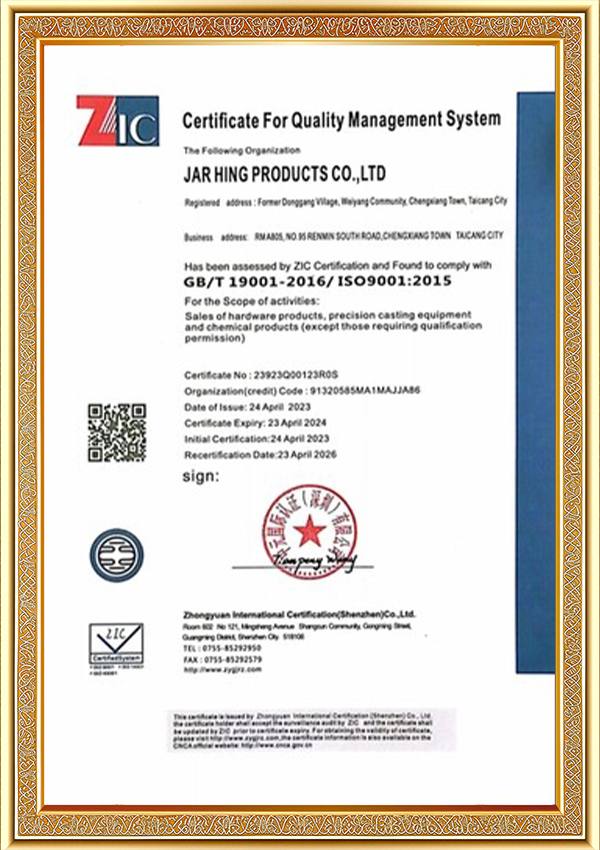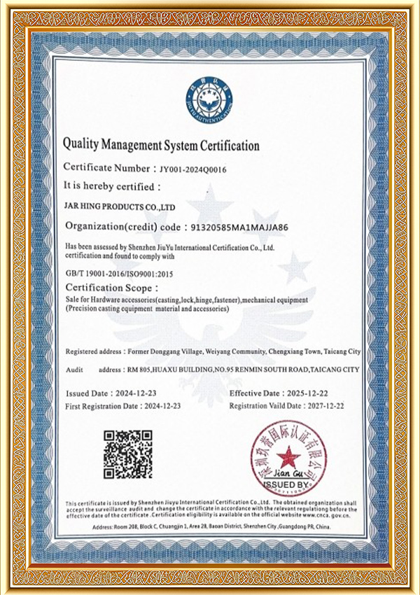 Jar Hing Products Co., Ltd. est ISO certificatorium professionalis et fidelis industrialis quae offeruntaccuratius mittentespartes et ministerium ordinantur pro quibus partes praecisiones requiruntur, praesertim in autocinetis, constructione, supellectili, medicinae, cibi industria, electricae, redivivus industriae industriae, etc., cum experientia XIV annorum.